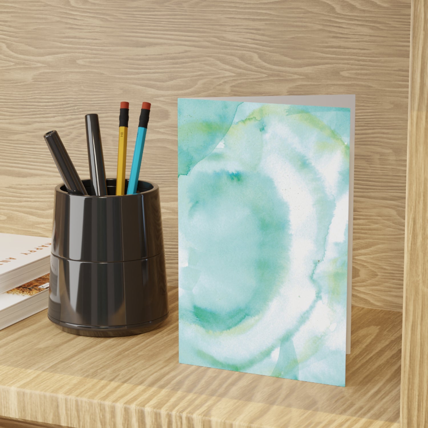 Aqua Bloom Watercolor Leaf Greeting Card - Elegant